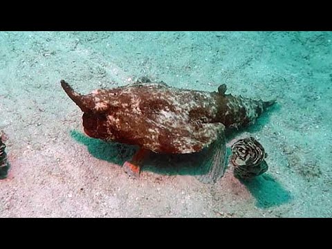 На острове Роатан в Карибском море, встретили редкую морскую рыбу «нетопырь Дарвина». Существо обладает человеческими губами и медленно ходит по морскому дну в поисках добычи.
