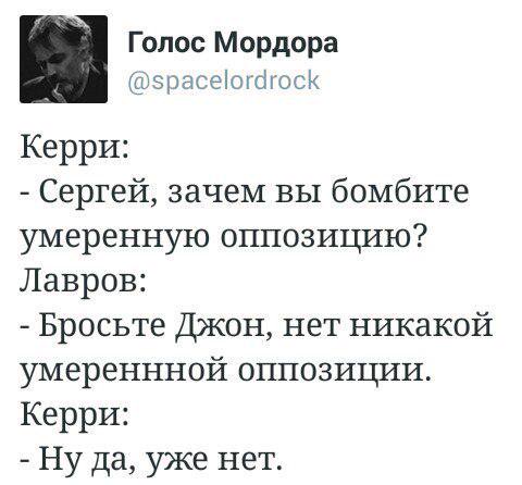 Известный журналист ведущего издания исключительного и демократического Запада, испросив разрешения в редакции, позвонил в Генштаб МО России с вопросом: — Как Вы различаете при бомбежках в Сирии, обычных террористов от умеренных? Девушка переключила меня на дежурного офицера, который очень вежливо объяснил: — Еще до начала военной операции в Сирии, в Генштабе МО РФ было принято ответственное решение. Суть этого решения заключается в нашем традиционном для России стремлении, строго соблюдать принципы законности и справедливости. Поэтому теперь, все наши боеприпасы делятся на две категории: обычные и умеренные. Против обычных террористов, мы используем исключительно обычные боеприпасы. А против террористов умеренных, мы используем боеприпасы исключительно умеренные. Так что можете не волноваться, умеренность некоторых из террористов мы учитываем и поступаем с ними по справедливости. После этих слов, мне стало значительно легче. Но я все-таки уточнил: — Вы действительно используете против умеренных террористов исключительно умеренные боеприпасы, это правда?! Собеседник ответил: — Слово русского офицера! Мне стало совсем хорошо. Чтобы внести окончательную ясность, я спросил: — Скажите, а насколько ваши обычные боеприпасы, отличаются от умеренных? — Наши обычные боеприпасы отличаются от боеприпасов умеренных, ровно на столько же, насколько обычные террористы в Сирии, отличаются от террористов умеренных: они покрашены другой краской, в более светлых и более умеренных тонах — ответил офицер и повесил трубку.