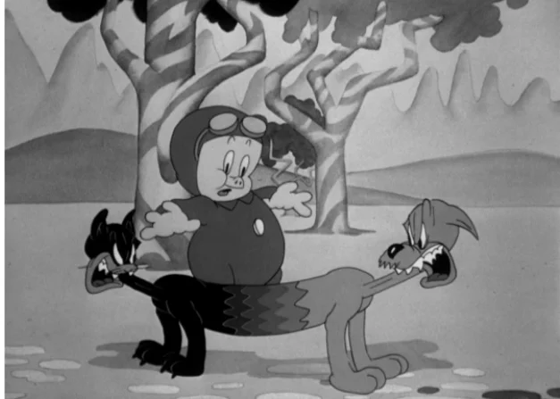 Ничего необычного в этом нет, просто короткометражка 1943 года оказалась цветным ремейком мультика аж 1938 (!) года с Порки Пигом в главной роли. Жаль, что про КотоПса отдельный эпизод не сняли...