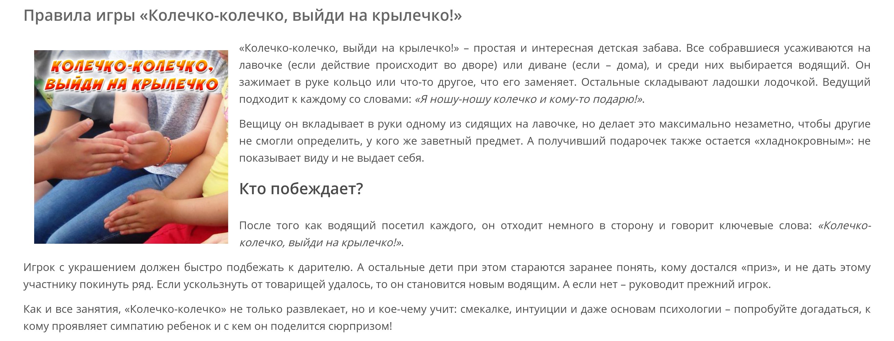 Я уже забыл эту игру! А после твоего коммента вспомнил! Да, в детском саду играли..60-е годы… А еще из старорусских отголосков помню игру: «Бояре, а мы к вам пришли, молодые, а мы к вам пришли..» со сватовством невесты. Сейчас эти игры нарочь забыты...