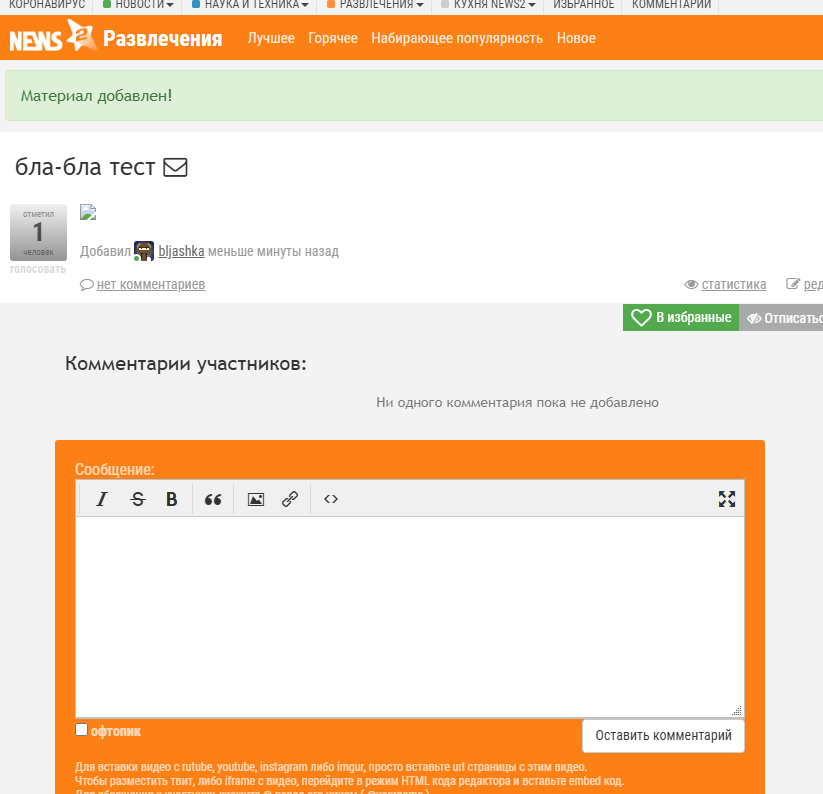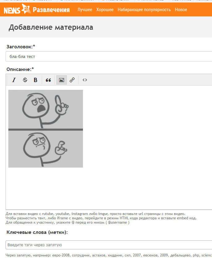 потому что когда я пытаюсь загрузить картинку в новости, то получаю сломанное изображение а в комментарии всё получается