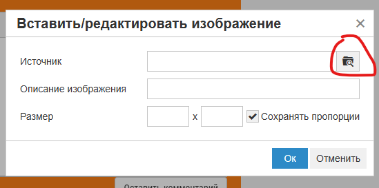 нажать кнопку «Вставить/редактировать изображение»